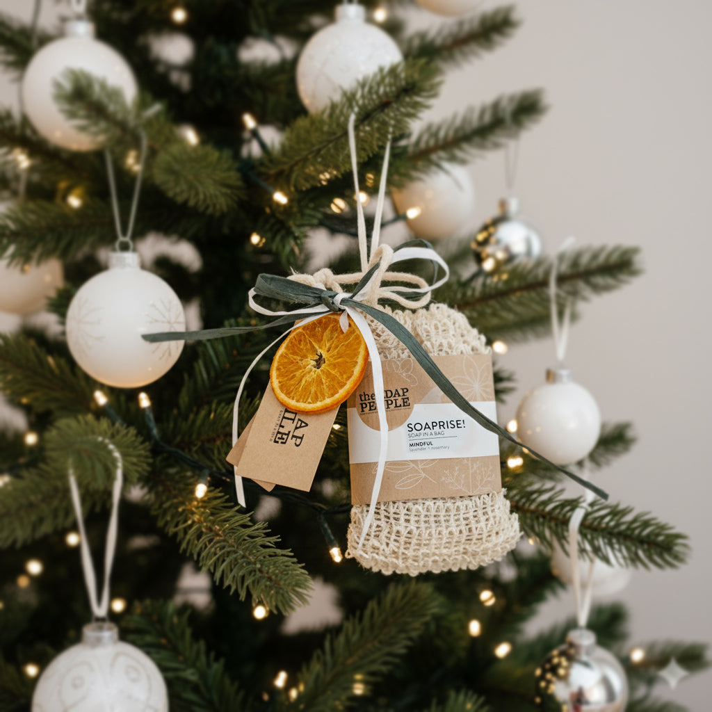 You select which soap you would like & we will pop it into one of our exfoliating sisal soap bags adorned with a Christmassy embellishment & gift tag.